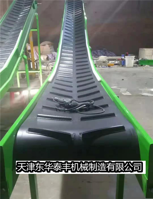 爬坡皮帶輸送機也稱爬坡皮帶機,爬坡皮帶線,有如下特點: