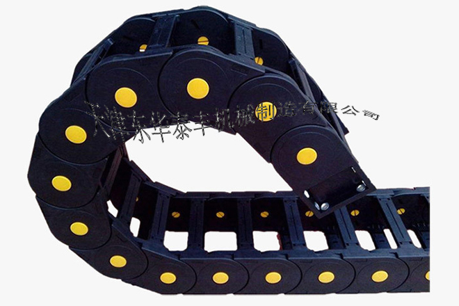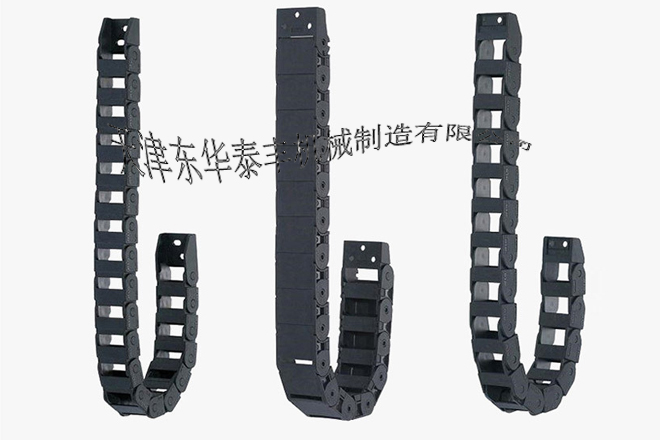 ?  拖鏈外形似坦克鏈,由眾多單元鏈節(jié)組成,鏈節(jié)之間轉(zhuǎn)動自如。相同系列的拖鏈內(nèi)高、外高、節(jié)距相同,拖鏈內(nèi)高、彎曲半徑R可有不同的選擇。單元鏈節(jié)由左右鏈板和上下蓋板組成,拖鏈每節(jié)都能打開,裝拆方便,不必穿線,打開蓋板后即可把電纜、油管、氣管等放入拖鏈內(nèi)。